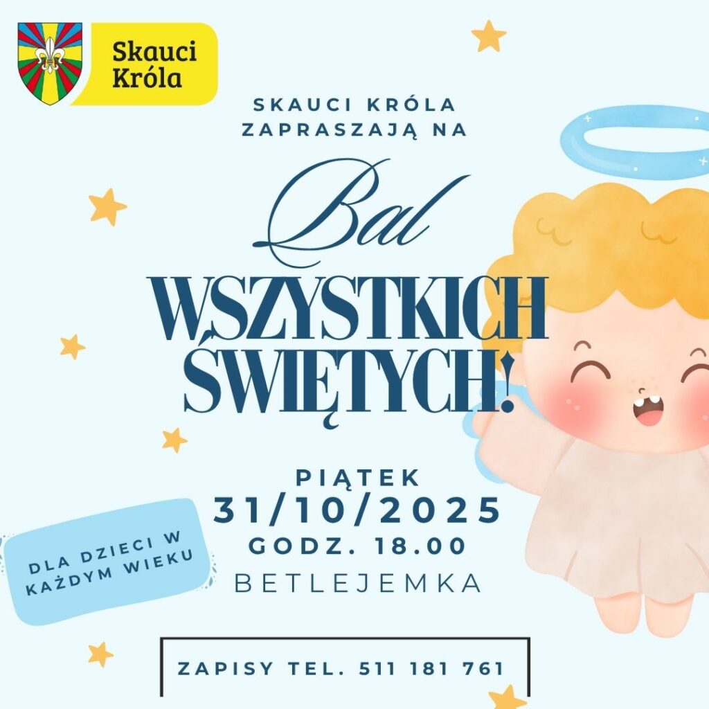 8. Skauci Króla zapraszają wszystkie dzieci w każdym wieku na Bal Wszystkich Świętych, który odbędzie się w piątek 31.10 od 18:00 do 20:30 w Betlejemce (sala przy plebanii). Zapisy telefoniczne – 511 181 761.
